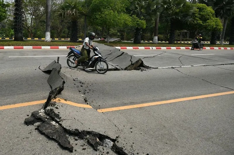• En Naipyidó, la capital de Myanmar, han aparecido enormes grietas en las carreteras,