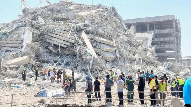 • 70 trabajadores de la construcción están desaparecidos tras el derrumbe de un rascacielos inacabado en Bangkok, donde el sismo ha sembrado el pánico y miles de personas han sido evacuadas de los edificios de la capital.