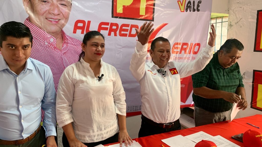 Coscomatepec Ver. 29 de abril de 2025. Alfredo Valerio, candidato del Partido del Trabajo (PT), inició formalmente su campaña electoral este martes a las 9:00 de la mañana con la inauguración de su casa de campaña, acompañado por decenas de militantes y simpatizantes del partido.