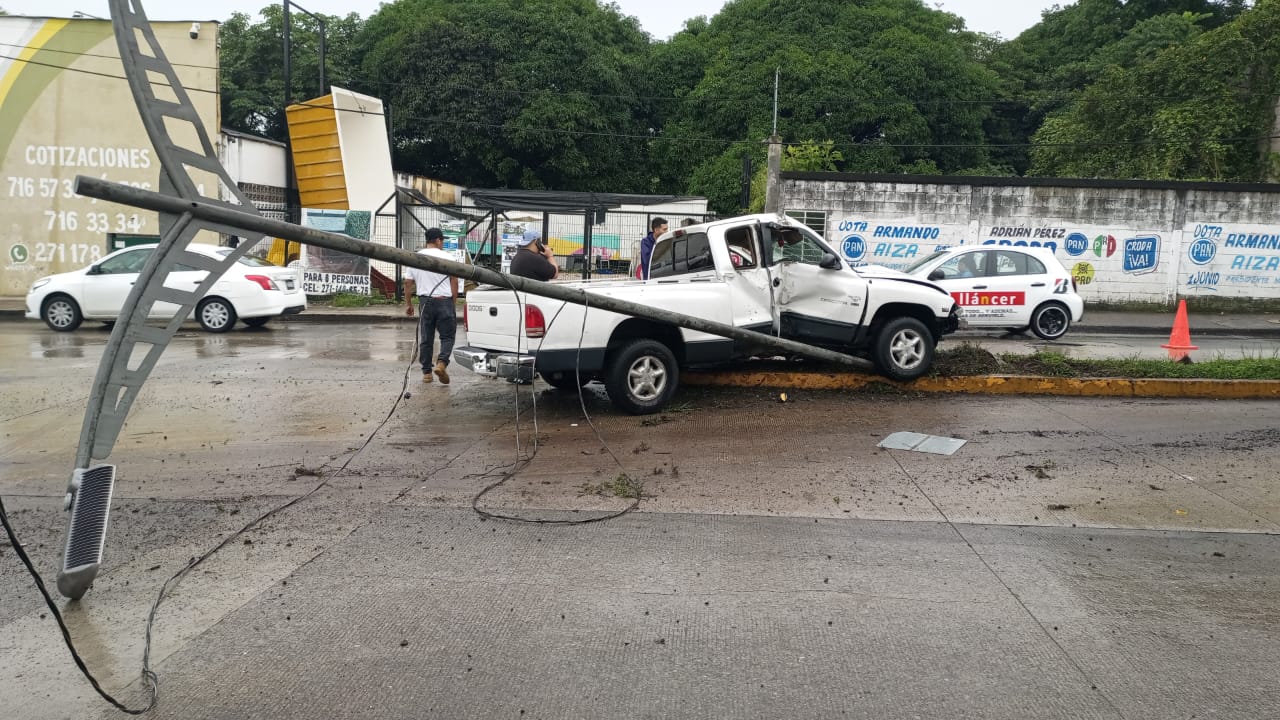 Córdoba, Ver.- La mañana de este jueves se registró un fuerte accidente vehicular sobre la avenida 11, en las inmediaciones de la ESBAO, cuando el conductor de una camioneta perdió el control y se estrelló contra una palmera y una luminaria.