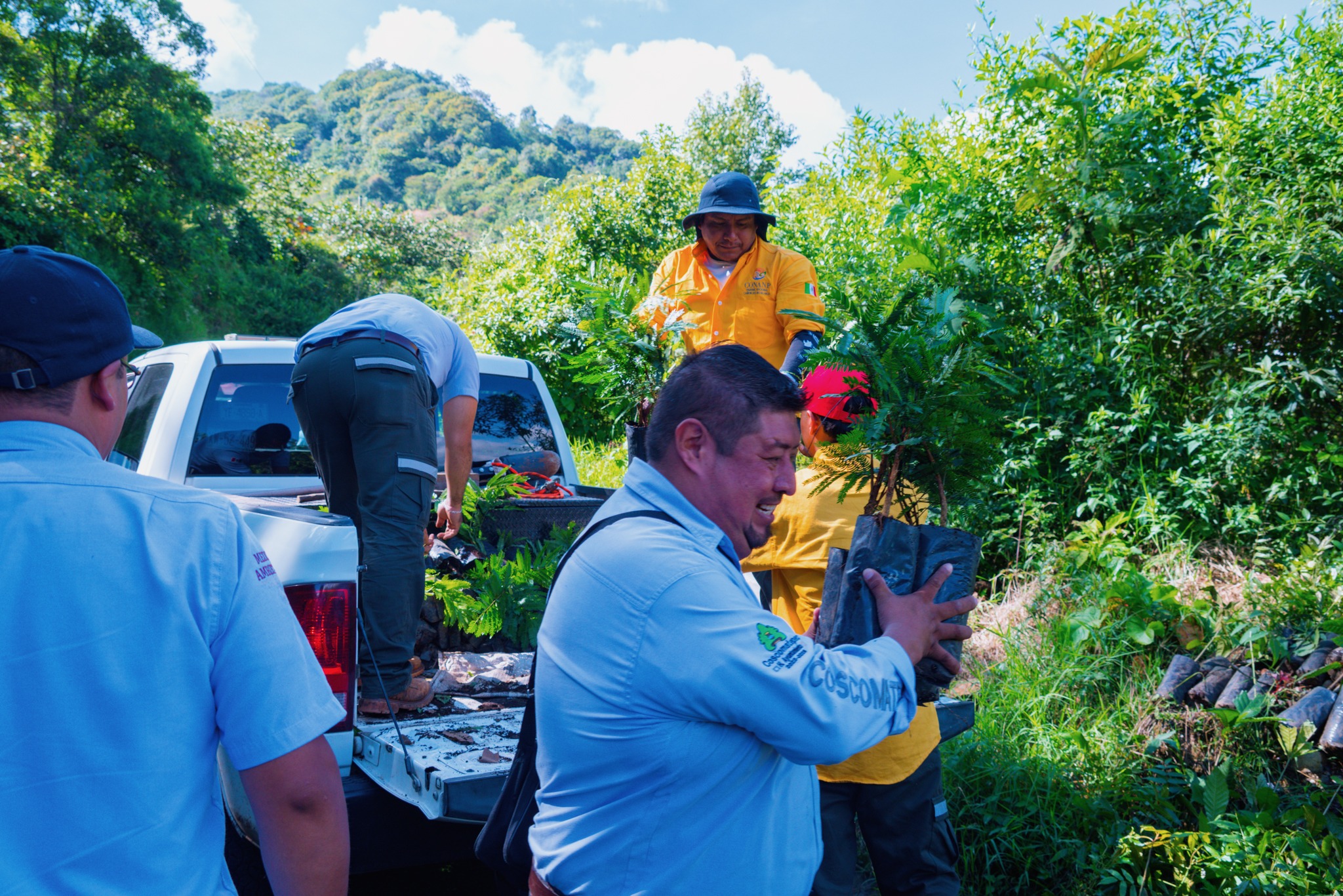 Coscomatepec, Ver. — Con el firme propósito de preservar el entorno natural, el H. Ayuntamiento de Coscomatepec, en coordinación con el Complejo PN Cañón del Río Blanco – APRN Tlachinoltepetl y la Cervecería Artesanal Sabario, realizaron una Jornada de Reforestación en la comunidad de Tetlaxco, dentro del área de amortiguamiento del APRN Tlachinoltepetl.