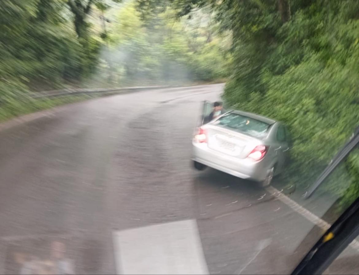 Tomatlán, Ver. — Esta mañana, un automóvil sufrió un percance en la carretera federal Fortín-Conejos, específicamente en la curva conocida como La Herradura.