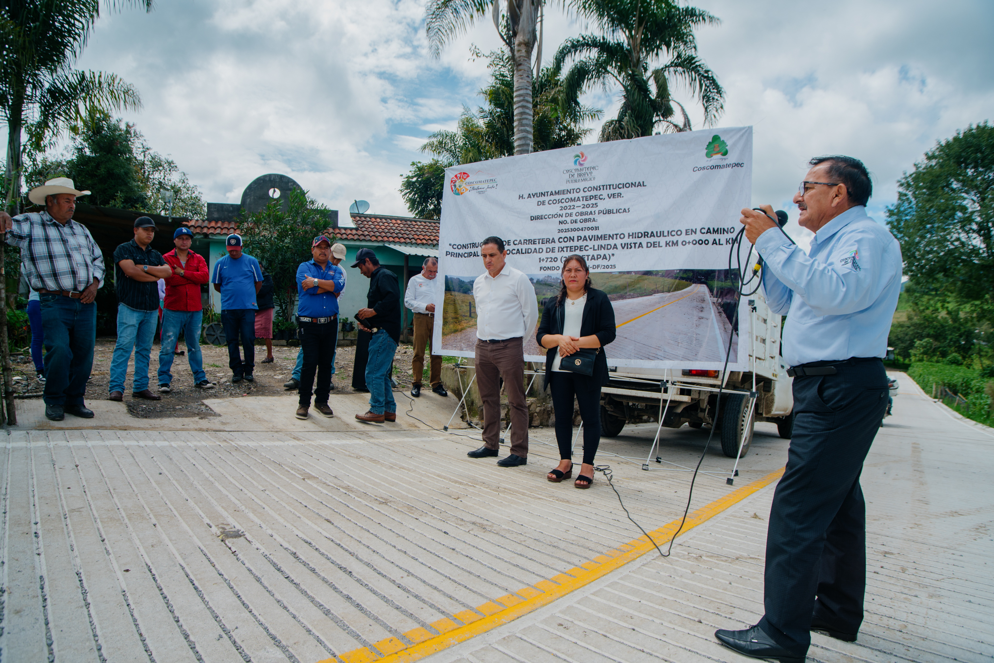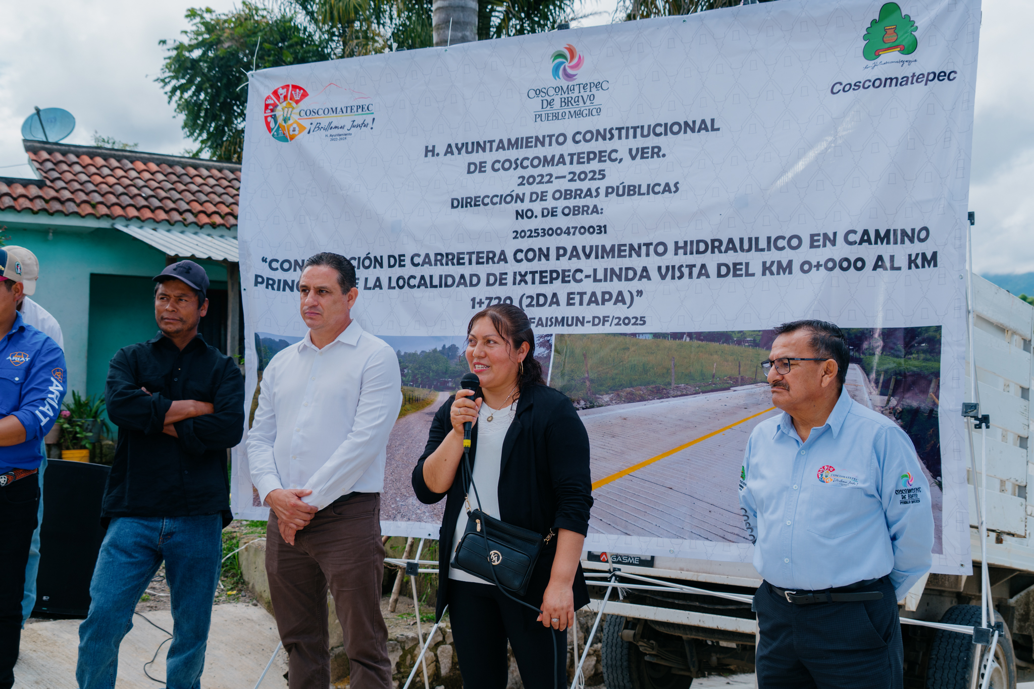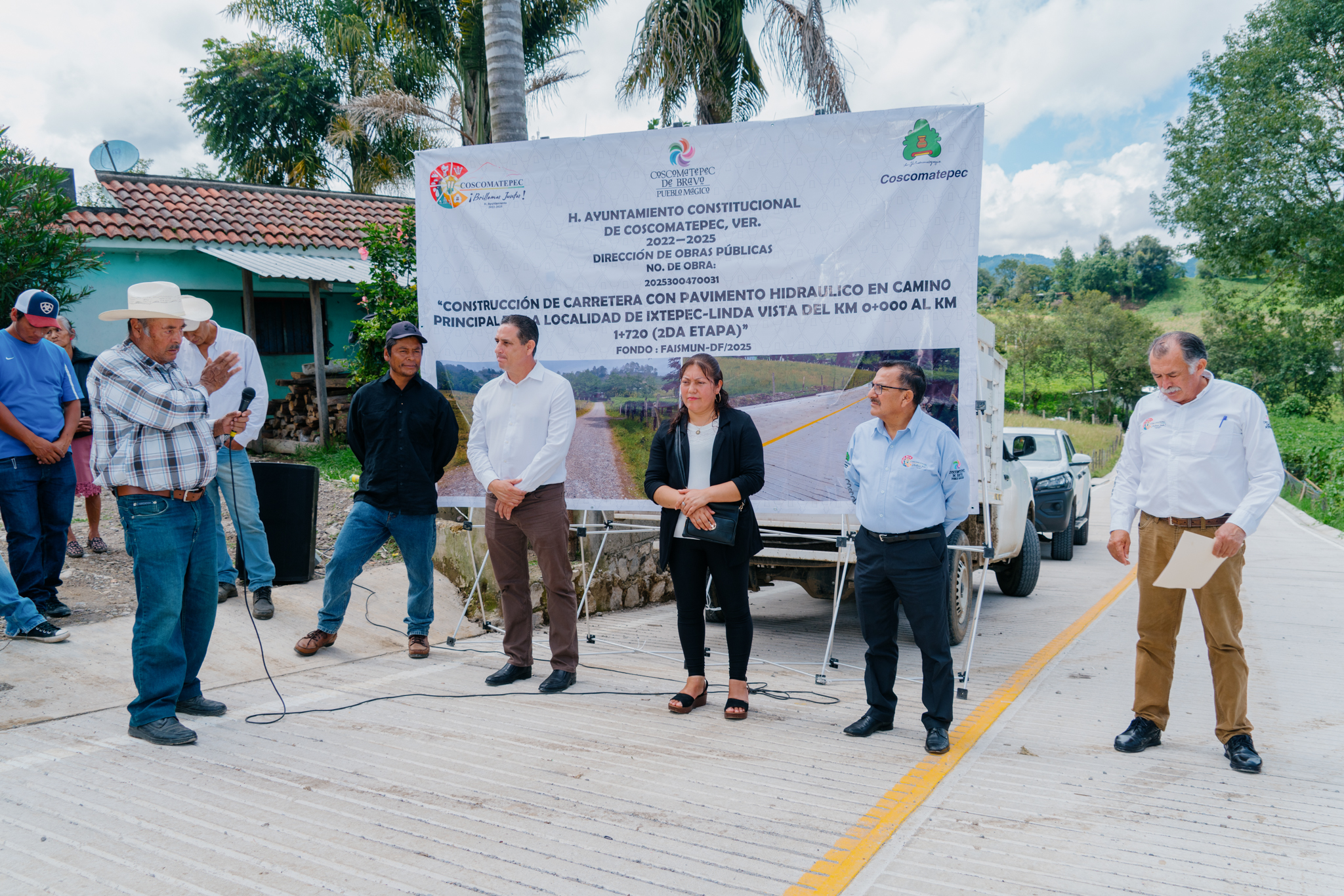Coscomatepec, Ver.- El H. Ayuntamiento de Coscomatepec inauguró la construcción de una carretera con pavimento hidráulico en el camino principal de la comunidad de Ixtepec – Linda Vista, una obra que busca mejorar la conectividad y la calidad de vida de las familias de la zona.