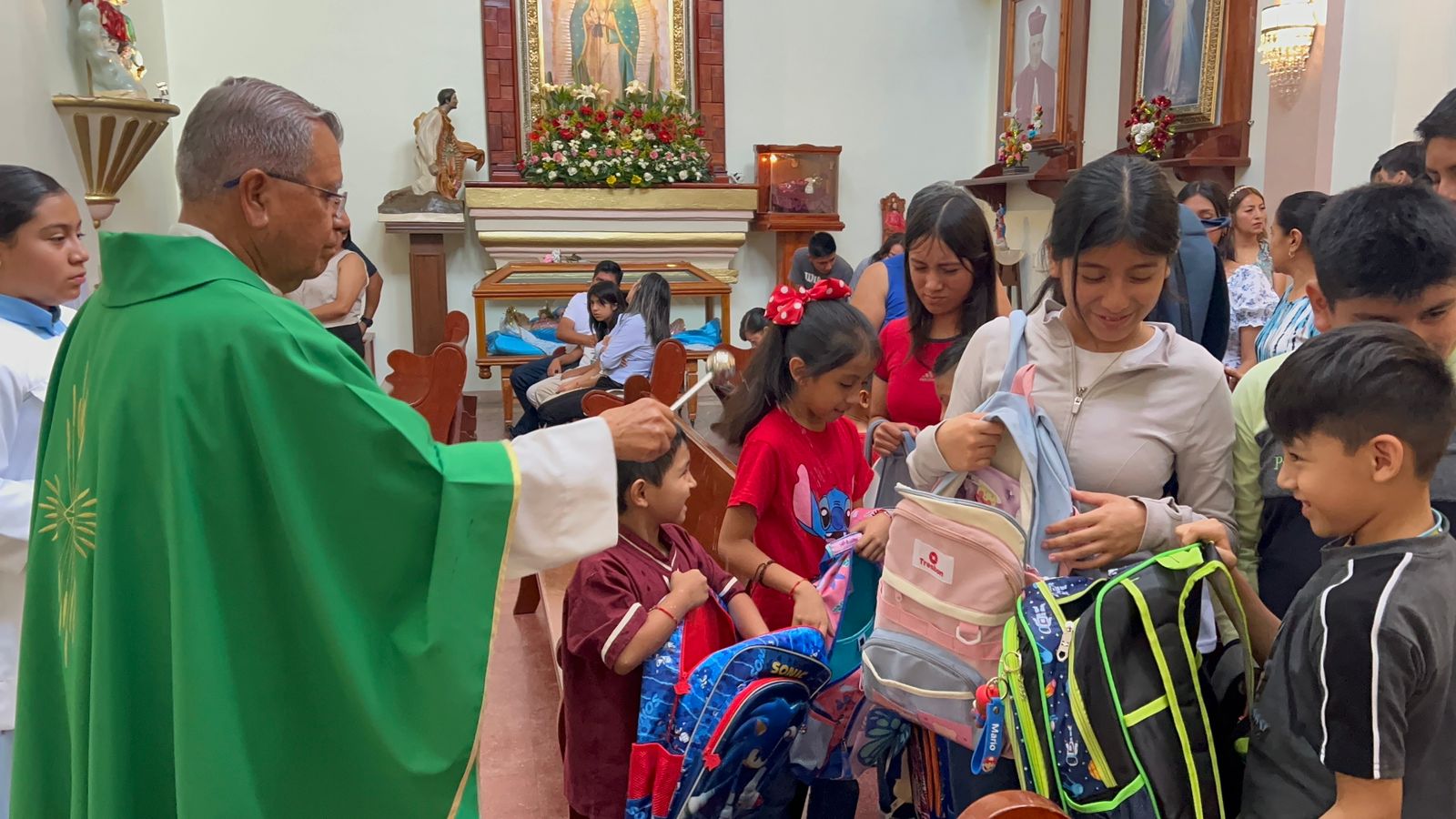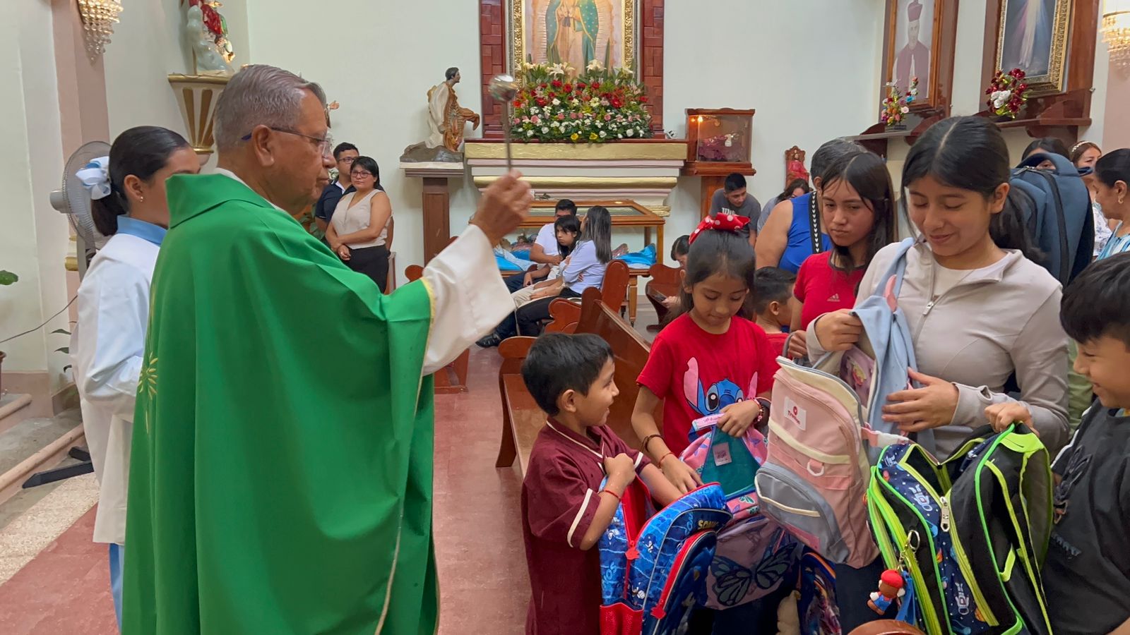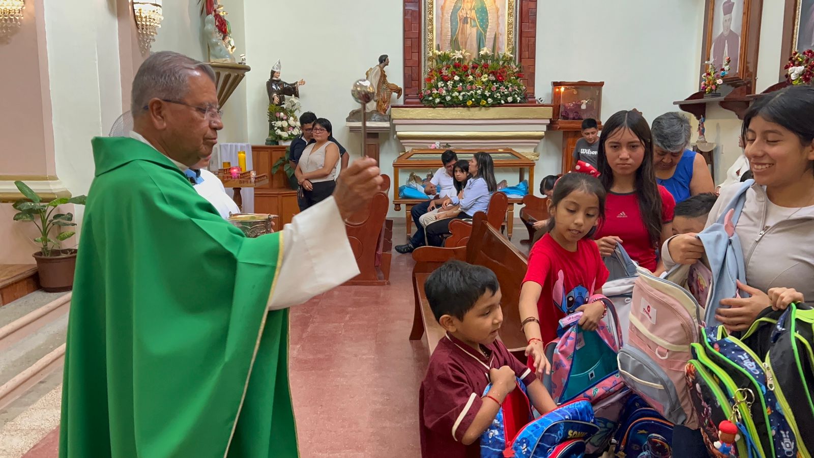 Coscomatepec, Ver. – La Rectoría de San Diego de Alcalá se llenó este domingo 31 de agosto para recibir la tradicional bendición de mochilas y útiles escolares por parte del padre Antonio Aristeo Hernández Ramos.