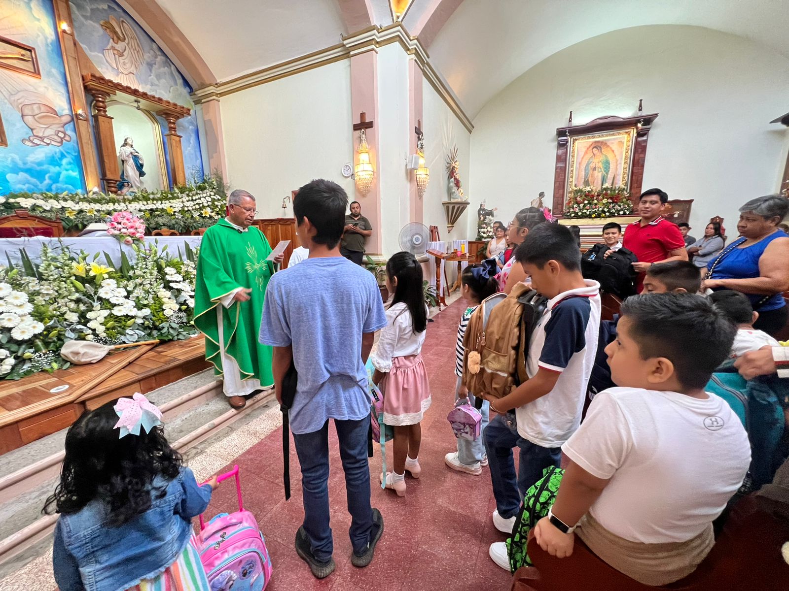 El acto se realizó durante la misa de la 1:00 p.m., un día antes del inicio del ciclo escolar 2025-2026, en la catedral del centro histórico, marcando un emotivo inicio para los estudiantes.