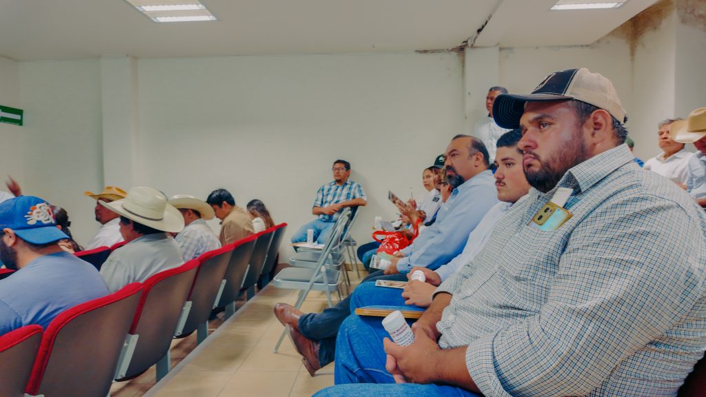 Coscomatepec, Ver.– Con el propósito de reforzar las acciones de sanidad animal, se impartió una plática dirigida a productores ganaderos sobre el Gusano Barrenador del Ganado.