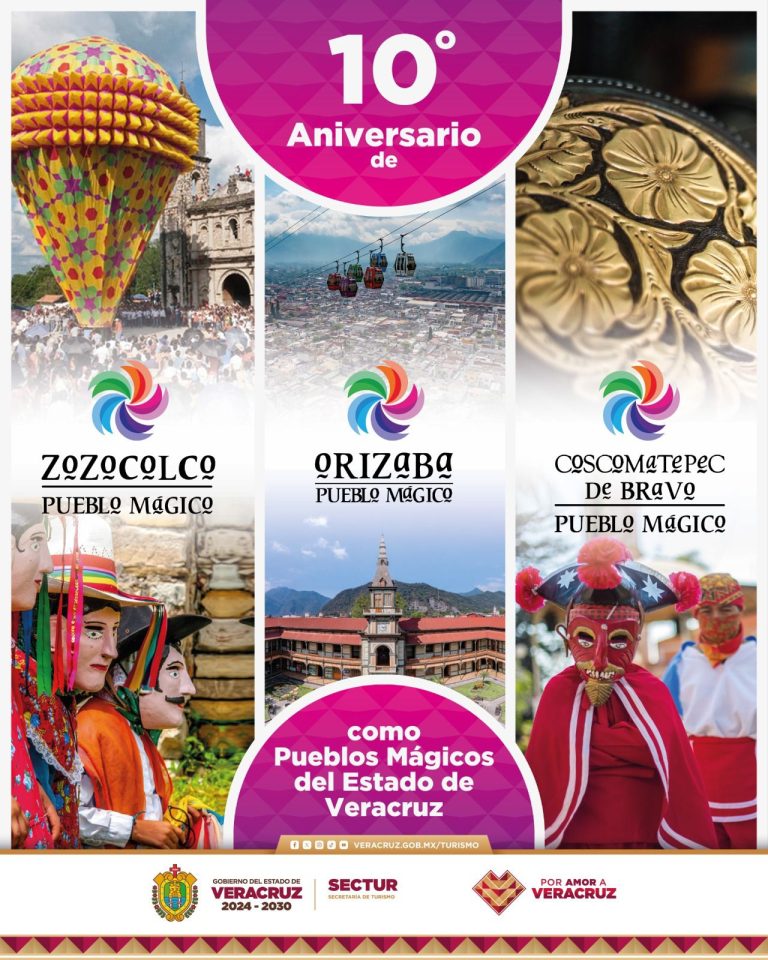 Xalapa, Ver. – La Secretaría de Turismo del estado anunció el inicio de las celebraciones por el décimo aniversario del nombramiento de Orizaba, Zozocolco y Coscomatepec como Pueblos Mágicos, reconocimiento otorgado en 2015 por la federación gracias a su riqueza cultural, histórica y natural.