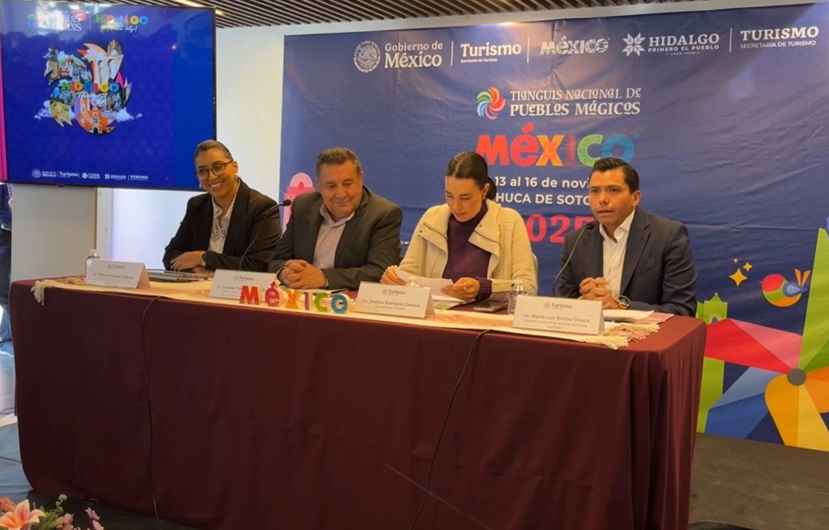 Pachuca, Hgo.– La Secretaría de Turismo del Gobierno de México y el Gobierno de Hidalgo presentaron los detalles del Séptimo Tianguis Nacional de Pueblos Mágicos, que se realizará del 13 al 16 de noviembre de 2025 en Real del Monte y el Recinto Ferial de Pachuca.