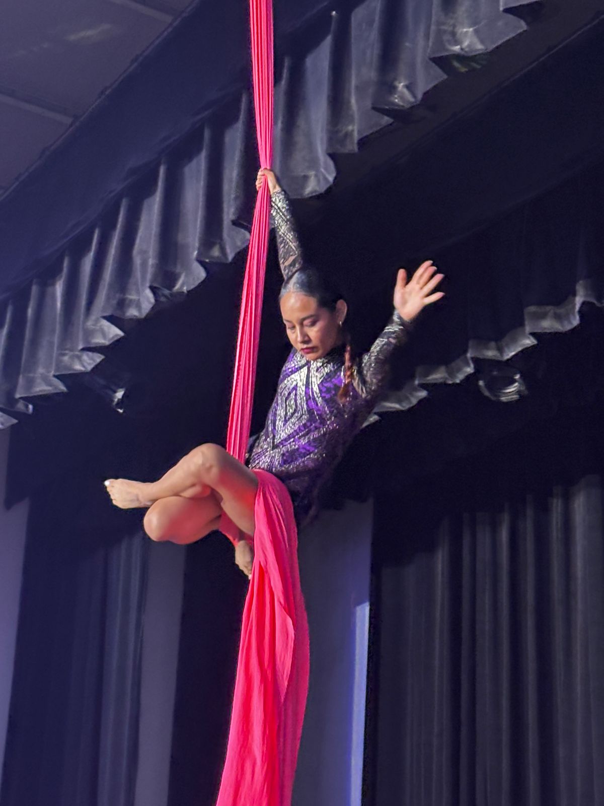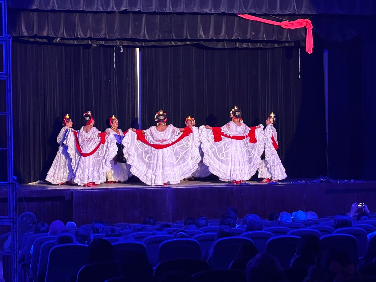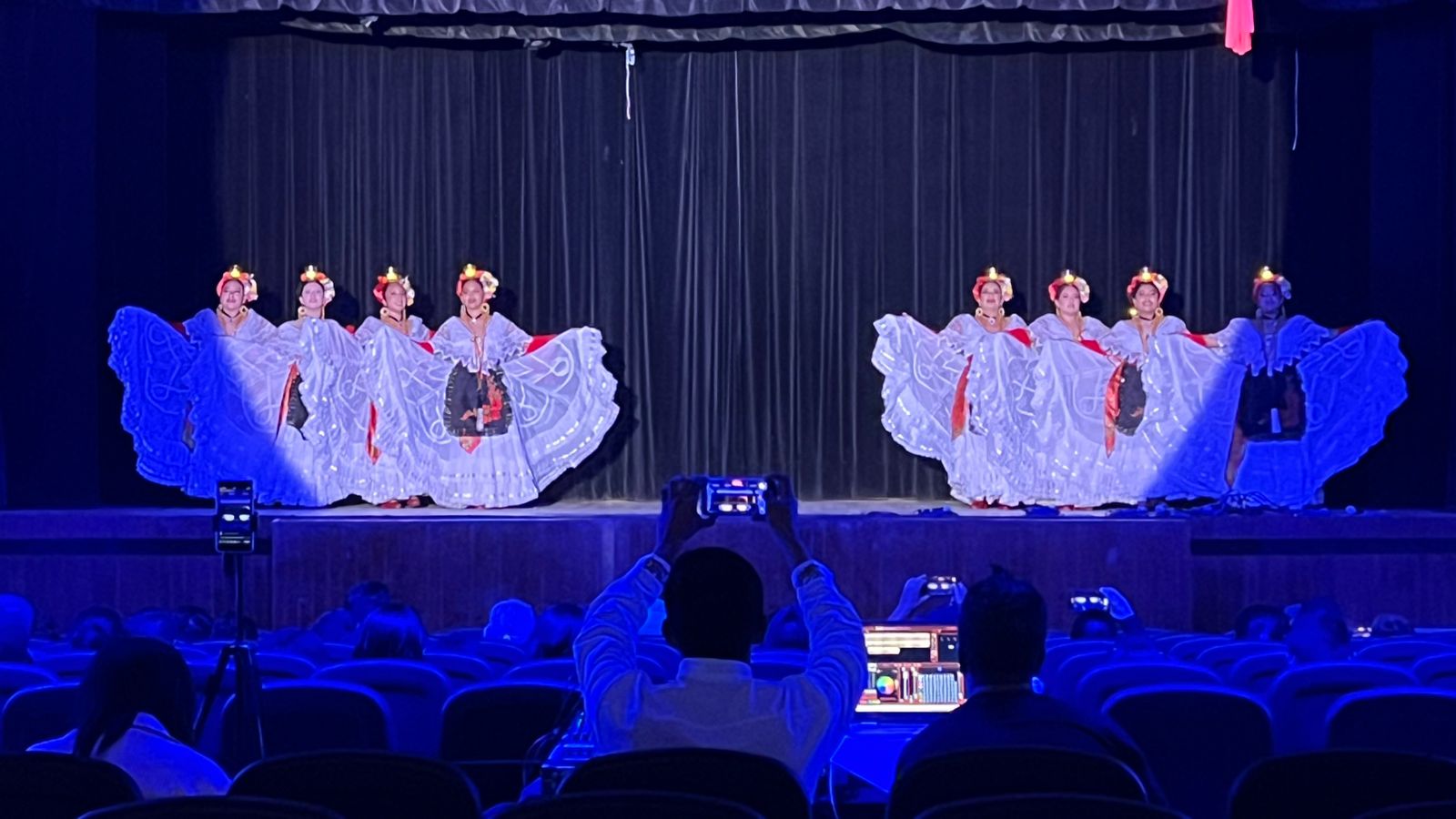Con un aforo sobresaliente y un público entusiasta, el escenario se transformó en una estampa viva de nuestras tradiciones. El Ballet Folklórico Tomatlán abrió la noche con una estela de colorido, sincronía y elegancia, evocando la memoria colectiva a través del baile tradicional.