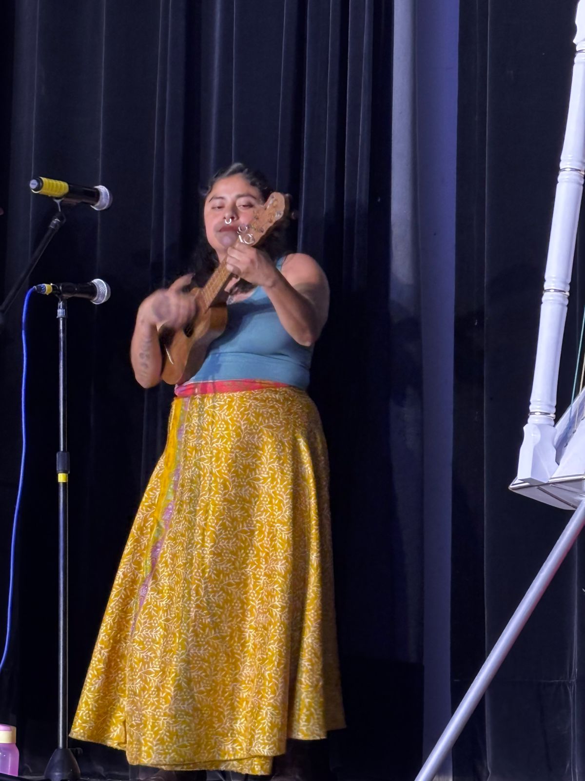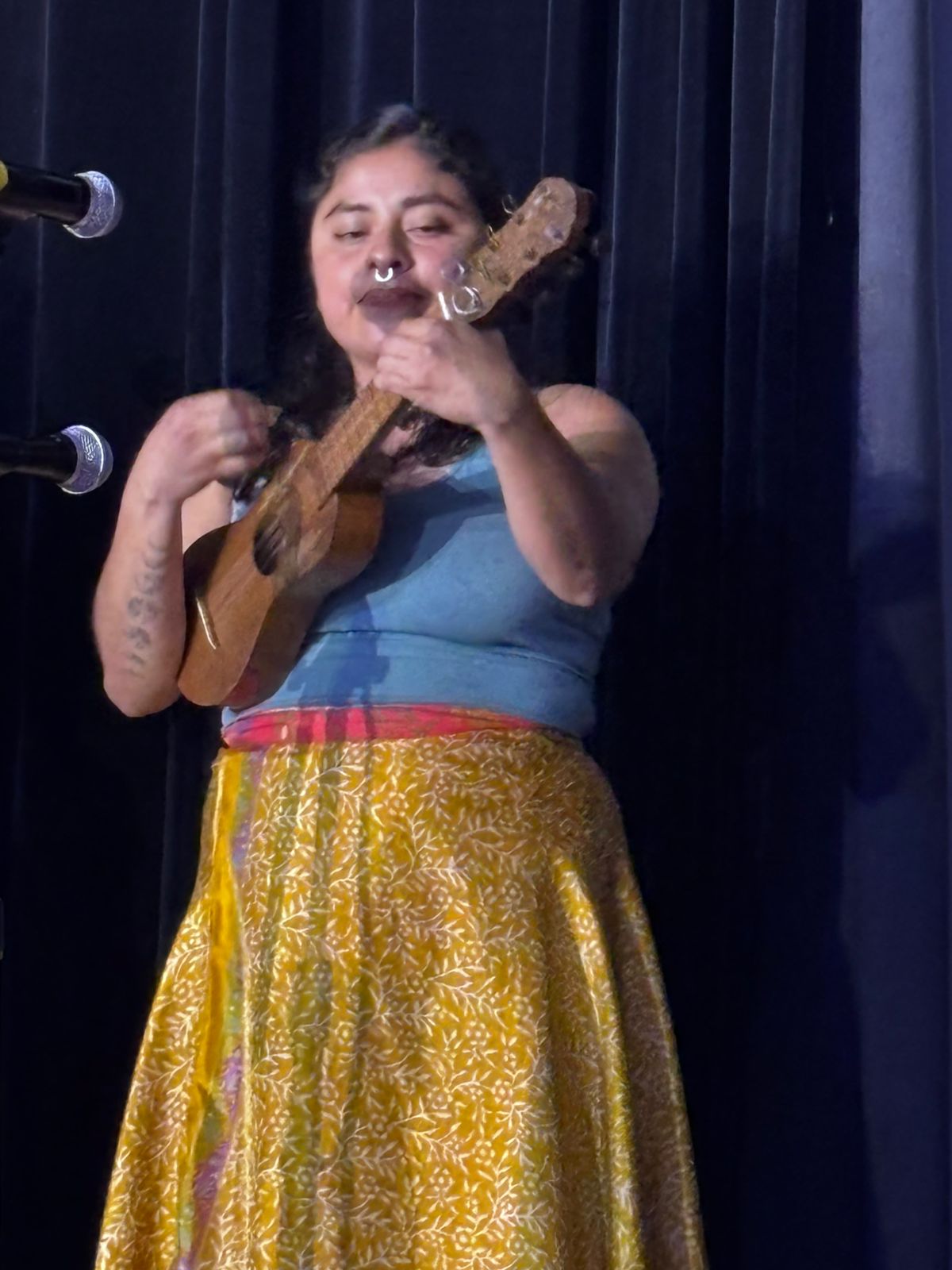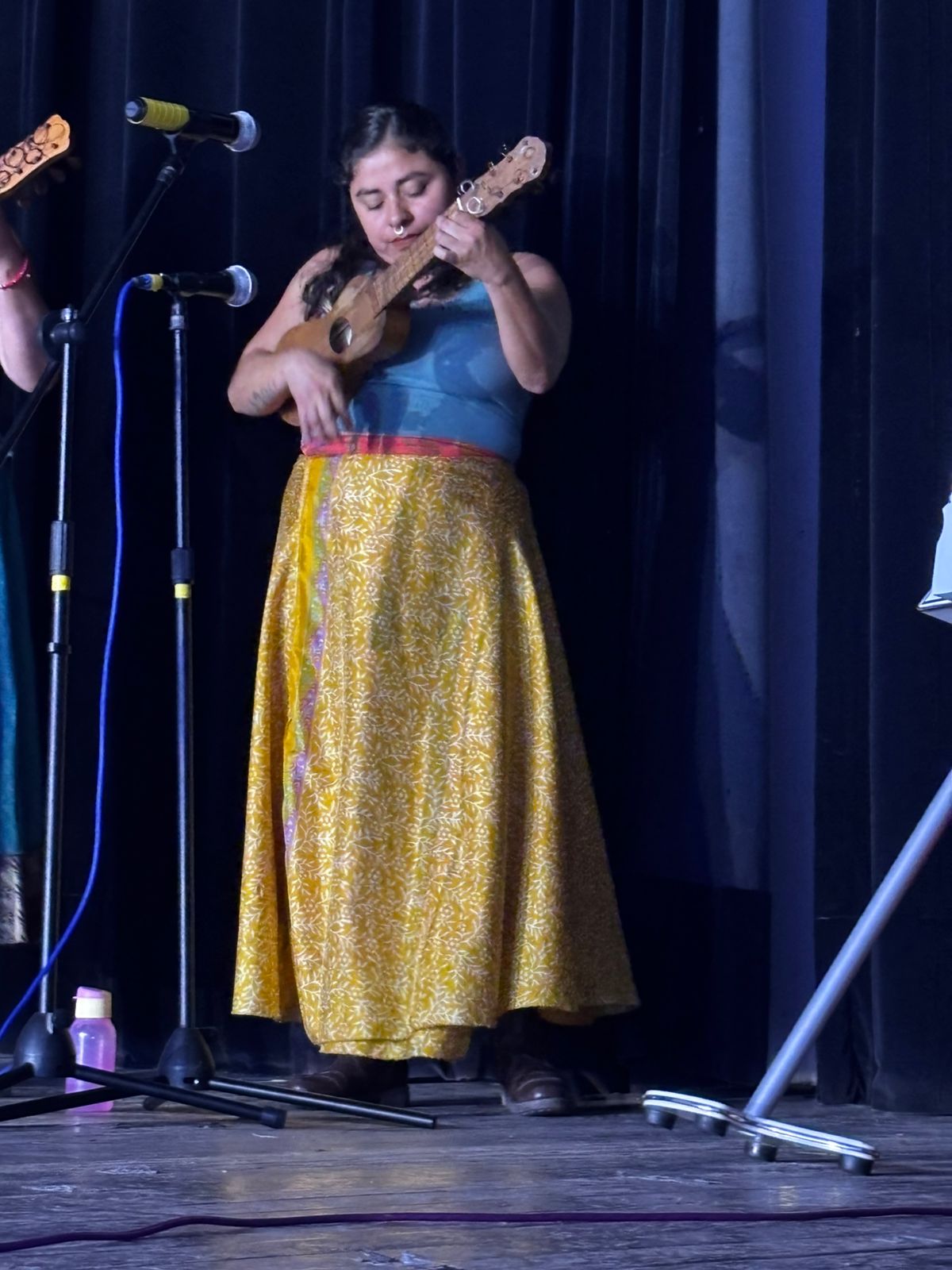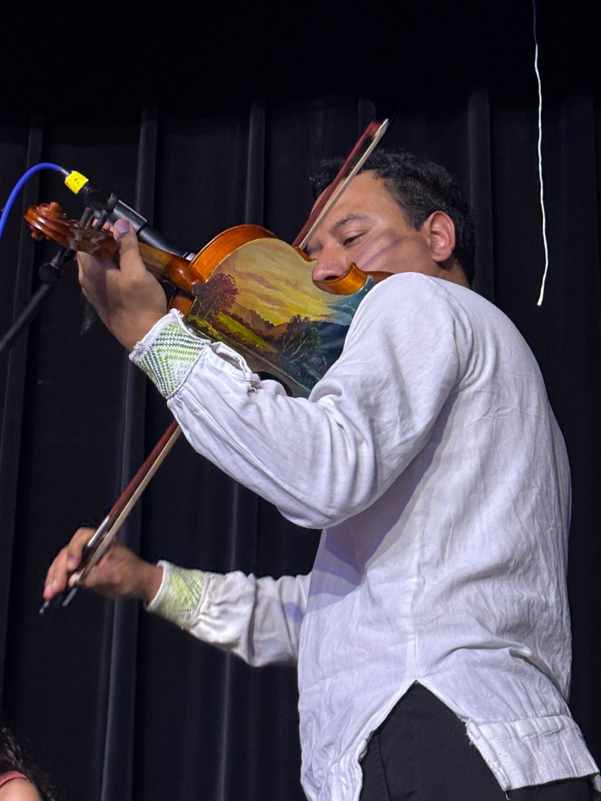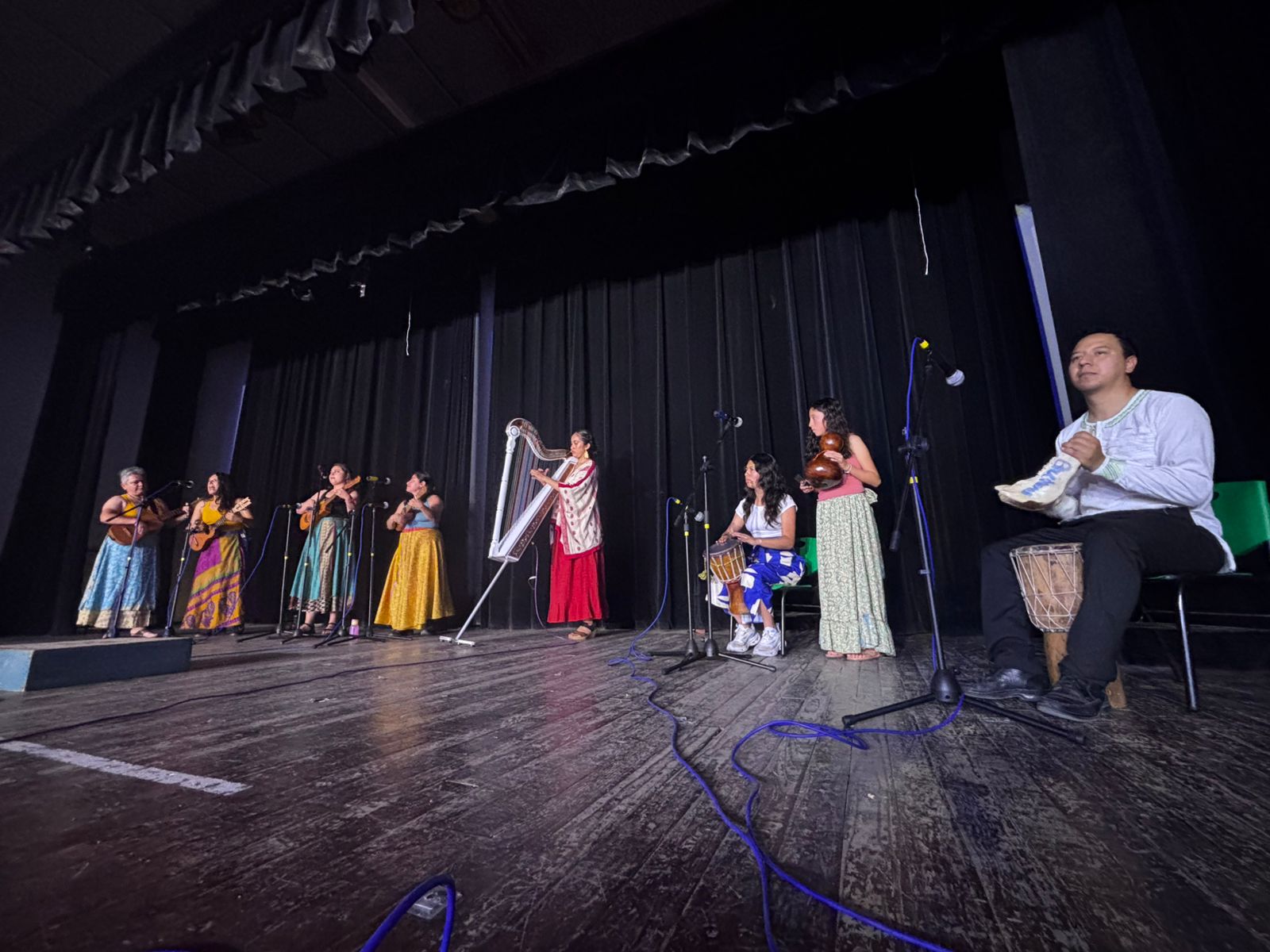 El ambiente subió de intensidad con el Ensamble de Son Jarocho: Brujaneras y Nietos del Chiltepéc, cuyo sonido profundo de jarana, violín y zapateado envolvió al recinto, recordando al público que la música veracruzana es fuerza, raíz y resistencia cultural.