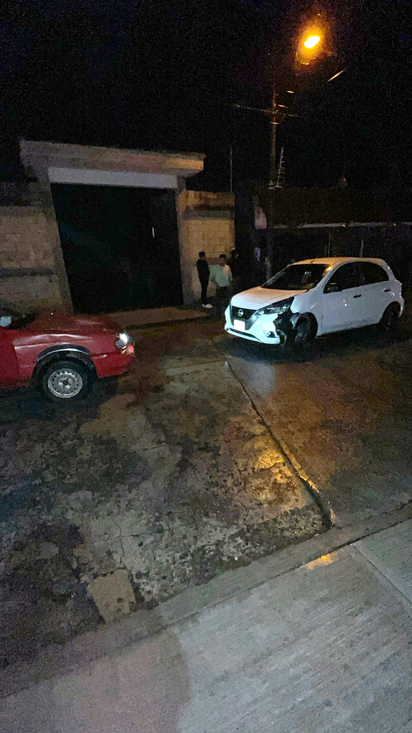 Coscomatepec, Ver.- La noche de este lunes se registró un accidente vehicular en la calle Agustín de Iturbide, en el barrio de La Quinta, luego de que un automóvil invadiera el carril contrario y se impactara contra otra unidad, a la altura de un conocido restaurante de la zona.