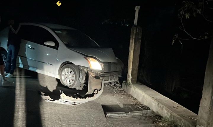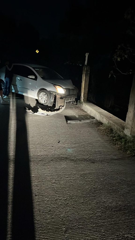 La noche de este día se registró un accidente vehicular en el libramiento de El Carril en Coscomatepec, donde un automóvil particular presuntamente perdió el control y terminó impactándose contra los postes de una cerca.