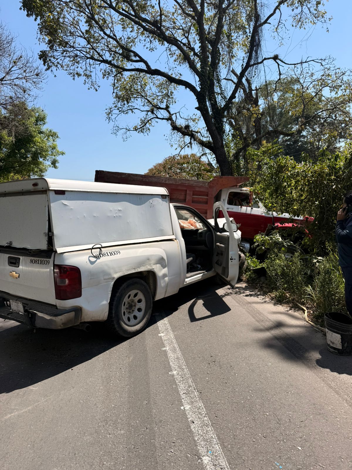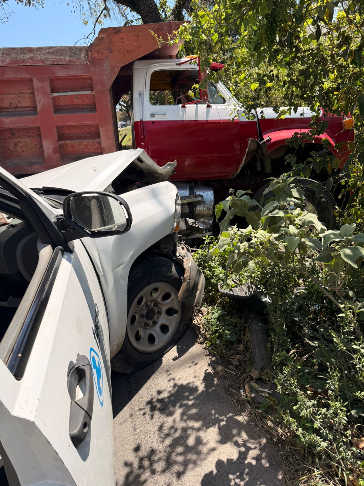 En el percance estuvieron involucrados un camión de carga tipo volteo y una camioneta perteneciente a una empresa particular. Tras el impacto, ambas unidades quedaron obstruyendo parte de la vialidad, lo que generó afectaciones en la circulación.